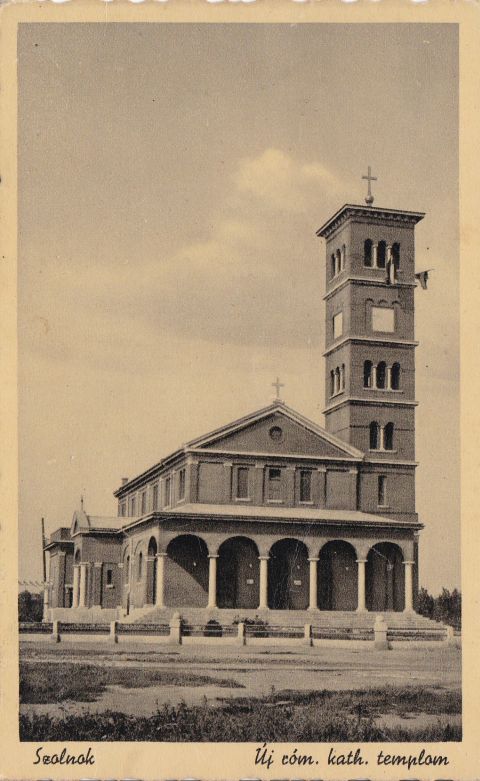 Nem tudhatjuk, hogy a fiatal katona szándékosan vagy véletlenül küldte-e éppen az újvárosi templomot ábrázoló képeslapot. Így azt sem, hogy tudott-e bármit is erről az épületről, ami első ránézésre több száz éves is lehetne, vagy akár Itáliában is állhatna. Pedig csak alig tíz évvel korábban adták ki az építési engedélyét, hogy a szolnoki temető sarkáról lecsippentett területre, Fábián Gáspár tervei alapján felépítsék Szolnok új katolikus templomát. Az Újvárosban lévő isten házának alapkövét az akkori váci püspök tette le, majd Sipos István Lajos és Pápay Antal építették fel, hogy aztán 1937 pünkösdjén át is adják. A templom neoreneszánsz stílusban épült, de a hozzáértők szerint jellemző rá az olasz novocento (újklasszicizmus) is, így nem véletlen, ha erről a fotóról azt is gondolhatjuk, hogy akár Itáliában is készülhetett.