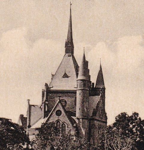 A fővárosi kiadású anziksz a felirata szerint a szolnoki református templomot ábrázolj. És bár valóban az 1894-ben átadott isten háza a leghangsúlyosabb rajta, azért az öt évvel fiatalabb zsinagóga, és a másfél évszázaddal öregebb katolikus nagytemplom is feltűnik. Ez különösen azért kedves, mert a Szolnok sokszínűségét és toleranciáját illusztráló három templomot szinte kizárólag a Tisza felől ábrázolták, ilyen szögből sem előbbi, sem későbbi fotót nem ismerek. Aminek nemcsak az a magyarázata, hogy alig pár évtized adatott meg a templomainknak, hogy hármasukat hirdethessék, de a park fáinak növekedése is. Ami szerintem a felvétel születésének időpontjára is magyarázatul szolgálhat.