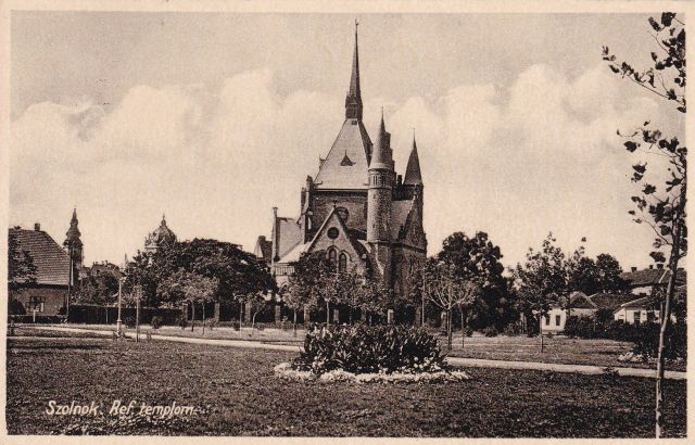 Az ehhez a szolnoki laphoz használt fotó 1914 és 1937 között bármikor készülhetett volna, ám nekem van egy olyan érzésem, hogy 1934-es vagy legfeljebb 1935-ös a felvétel. Amit, bár a református templom felirattal láttak el, gyönyörűen mutatja mindhárom nagy templomunkat, amelyek akkoriban a szolnokiak toleranciáját és a békés együttélést hirdették.