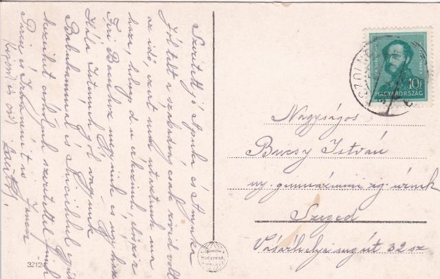 Ezt a képeslapot abban az időben küldték Szolnokról Szegedre, amikor a jól nevelt gyerekek még felnőttkorukban is magázták a szüleiket. A címzésre pedig nemcsak a „nagyságos” jelzőt írta fel az illedelmes fiú, de a címzett, azaz az édesapja rangját is: nyugalmazott gimnáziumi igazgató. Talán nemcsak azért, mert mit szóltak volna Szegeden, ha a pletykás postás véletlenül elkotyogja, hogy tiszteletlenül „beszélt” a direktor úrral a fia. Inkább mert ilyen volt a neveltetés, abban a korban, amikor tanárnak és igazgatónak lenni is rangot, megbecsülést és egzisztenciát jelentett. Az sem lehetett véletlen, hogy Bucsy István nyugalmazott igazgató úrnak pont egy ilyen képeslapot választott János fia, aki talán a Szolnokra való hazaérkezésükről számolt be így szüleinek, nem megfeledkezve a kézcsók küldéséről. Az unokák nevében is.