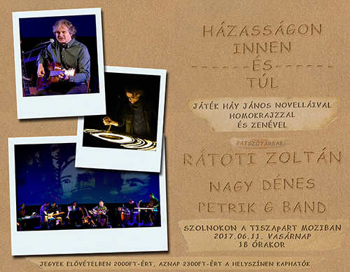 – Igen, ez egy nagyon speciális előadás, amit a bemutató után most játszunk majd először. Ceglédi vagyok és az ottani barátaim kerestek meg, hogy hallották a lemezeimet, és lenne-e kedvem valami közös produkcióhoz. Sokáig ellenálltam, mert egyszerűen nem fért bele az életembe. Ők viszont kitartóak voltak, kijelöltek egy időpontot a szülővárosomban, így végül megszületett a közös est. Ami tényleg nagyszerű lett, óriási sikere volt. Talán azért, mert az irodalom mellett a homokrajz illusztráció és a Petrik Gábor Band zenéje miatt több művészeti ág jelenik meg benne. Az meg nekem jelent külön örömet, hogy a zenekar néhány dalomat is meghangszerelte, így azok is elhangzanak a novellák között.