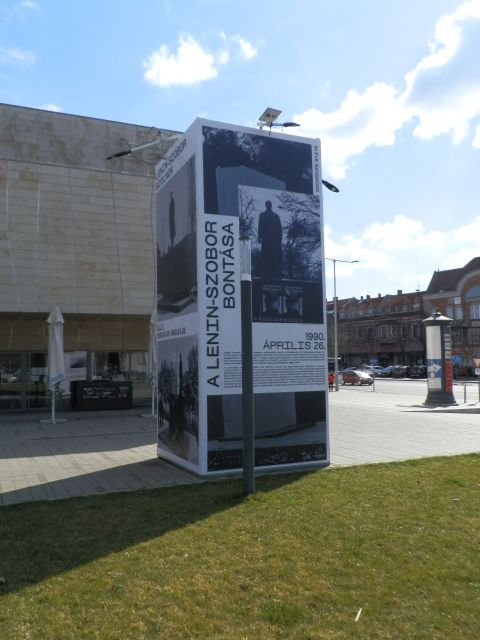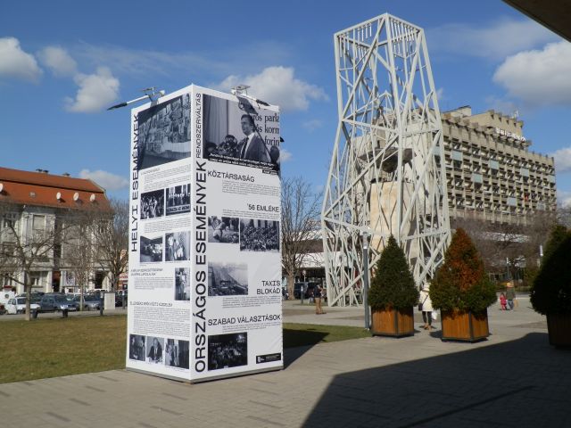 A legalább öt méter magas, minimum oldalanként két méter széles, tehát összesen vagy negyven négyzetméteres installáció láttán az első kérdés, amit fel kell tennünk, hogy vajon miért éppen most került ez ki Szolnok egyik forgalmas terére. Tény, hogy a rendszerváltást nem lehet egyetlen évszámhoz kötni. Néhányan már a világútlevél 1988. január 1-jei bevezetésétől kezdve számolják, míg mások csak 1989-et vagy éppen az első szabad választások évét, 1990-et tekintik annak. Természetesen 1991-re is lehet magyarázatot és akkor 30 éves évfordulót találni, hiszen abban az évben hagyták el az utolsó szovjet alakulatok Magyarországot, sőt Szolnokot is. Ám, ha nem egy megkésett – tavalyról vagy azelőttről kimaradt – kiállításról van szó, és az utóbbi dátum az apropó, akkor legalább egy fénykép és egy bekezdés kerülhetett volna a Vörös hadsereg kivonulásáról erre az utcai produktumra.