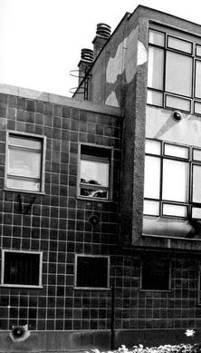 A másik, hogy ez a kép jól rávilágít a korabeli kivitelezés minőségre, illetve az előrelátás hiányosságaira. Mivel a kép valamikor 1969 előtt készült, és egy olyan kiadványban jelent meg, amely a Megyei Tervezővállalat hatvanas évekbeli munkáit gyűjtötte össze, a Térképészeti Hivatal József Attila úti épülete épület a fotózáskor maximum 9 éves lehetett. Ami egy épületnél ugye nem kor. Ám itt érdemes felnézni a második emelet sarkára, ahol már hatalmas felületen hiányzik a vakolat. Pedig az irodaháznak ez a profilja lehetett a jobb állapotú, hiszen a korabeli fotósnak biztos, hogy megmondták: az épületről a legelőnyösebb képet készítse. Az előrelátás hiányosságára pedig a földszinti gázkonvektor-szellőzők kialakításának igényessége utal. Kerámia, lábazati burkolat nem számított, ha egyszer meg kellett oldani a gázfűtést.