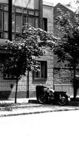 Talán valamelyiküké lehetet az a gyönyörű MZ Trophy – színe alapján – 125-ös motor a bejárat előtt. De az is lehet, hogy egy szolgálati motorkerékpárral van dolgunk, hiszen a hatvanas években járunk, amikor még a hivataloknak és cégeknek is csak korlátozottan jutott autó.