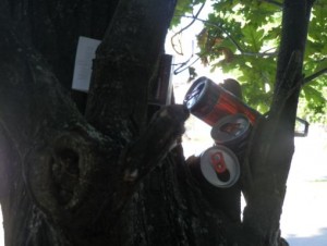 Vagy szemétből van sok, vagy kukából kevés. Avagy a fa közelebb van, mint a kuka. A szellemileg korlátoltak meg nem tudnak különbséget tenni a kuka és a fa között. Az 1-es parkoló postához közelebbi részén található ez a kukának használt fa. Hogy van-e összefüggés az ottani éjszakai bandázások és a fa kukának nézése között, persze nem tudhatom. De ez így nagyon nem menő.