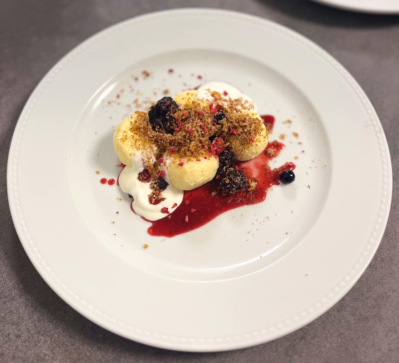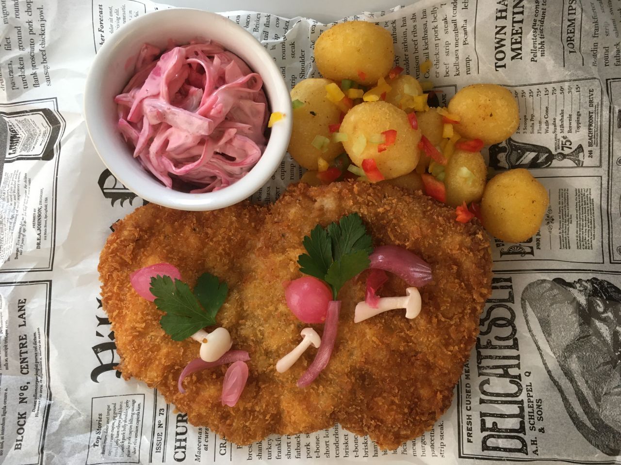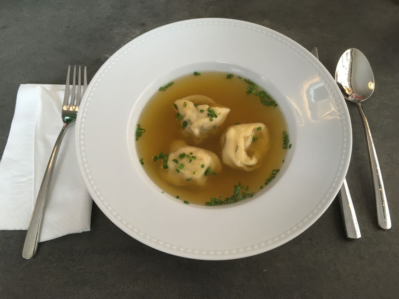 Szóval a Hugo belülről teljesen rendben van. A felszolgálás még kicsit döcögős – egy pincérnek illene tudni, hogy az étlapon mi, milyen húsból készült -, de hát a legszebb gyémántot is csiszolni kell. Persze a konyhát egy látogatás után nem lehet megítélni, de adjuk meg a kezdő lökést! Nem vagyok egy bonyolult lélek, az ismeretlen helyeket szeretem valami hagyományos dologgal tesztelni. Itt a húsleves, a rántott hús és a túrógombóc adott erre alkalmat, bár komolyan elgondolkodtam a rétegzett pityókán. A kakas eszencia házi tortellinivel épp annyira volt különleges és pluszlépés a klasszikus húsleveshez képest, hogy azt lehessen mondani, a ház specialitása, mert máshol így és ilyen nincs. Aranyló, ízletes lé, benne tésztába csomagolt finom hús. Bármikor vállalható. A rántott húsnak a panírja volt különösen finom, amiről Nagy Levin idevágó gondolatai jutottak eszembe. A túrógombóc – jaj, hányféle szárad már a lelkemen – viszont pont annyira volt egyedi, mint ami elvárható egy ilyen helytől. Három diszkrét gombócka, nem túlízesített tejfölben és Nagy Levinhez méltó morzsában, no meg valami kellemes lekvárral. Ezek egyenként nem összeadódtak, hanem hatványozódtak. Kiváló! Na, jó, beismerem, hogy beleszemtelenkedtem a sült padlizsánkrémjükbe és a sütőtökkel és nudlival tálalt kacsamellbe is. És nem bántam meg. A padlizsánkrémbe volt valami fantázia, a kacsamell meg minden másra rávert. De hát választani tudni kell.