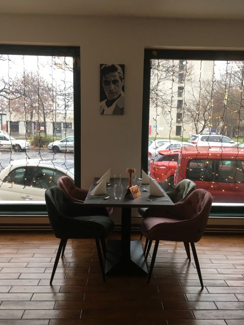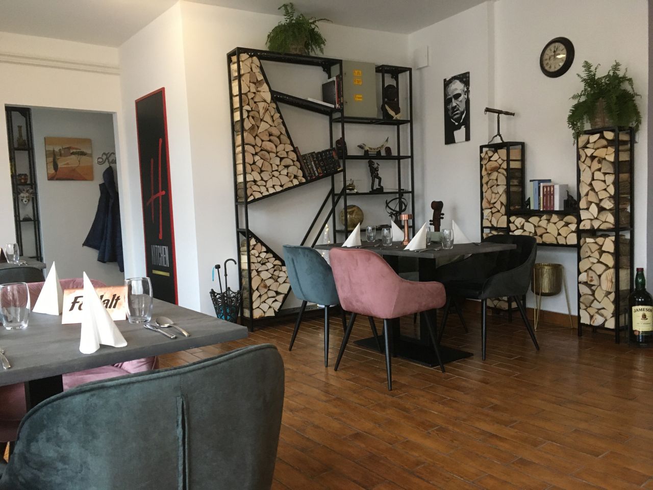 Maga a helyszín korábban is vendéglőként működött. Az elmúlt hónapokban viszont teljesen átalakították, és bár „Al Pacino, az örök haver” és „Marlon Brando, az öreg Don” tekint le ránk a földszinti, nagy ablakos, világos teremben, nem mondanám, hogy tematikus a berendezés. Sőt, kicsit inkább eklektikus és kusza, de pont annyira, hogy az ember jól érezze benne magát, ne nyomassza semmi, sőt elsőre még nézelődni is legyen kedve. Ottjártunkkor a pince még nem teljesen volt kész, de a patinás boltívek alatt, az Üvegtigris 2 dedikált plakátja mellett remek rendezvényhelynek (is) ígérkezik. Ha pedig egyszer a belső udvar is megnyílik, akkor ott tavasztól őszig remekül lehet majd ücsörögni. (Ha netán, a már emlegetett parkoló környékére más vendéglők is települnének, a parkolónak egy részéből frankó teraszok lehetnének!)