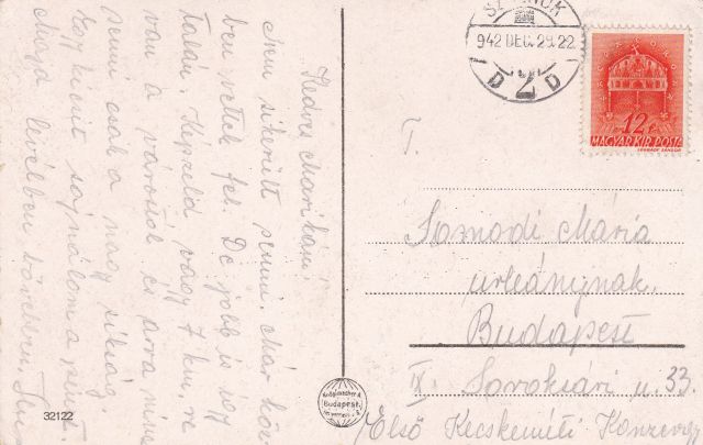 Ilus Budapestről érkezhetett Szolnokra 1942 végén. Nem minden alakulhatott úgy, ahogy tervezte, a fizetése is kevesebb lett, és a várostól 7 kilométerre lévő munkahely se tetszett. Hogy mit gondolt Szolnokról, aminek a legvárosiasabb utcájáról készült képpel üzent barátnőjének, nem tudom.