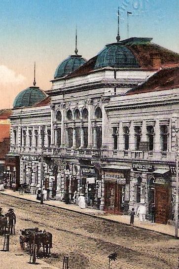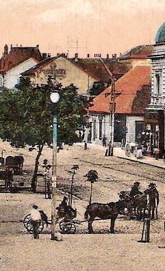 E képeslapot nézegetve, a korabeli infrastruktúrán gondolkodva a leginkább szembeötlő, hogy ekkoriban még elég gyér lehetett a város vízhálózata. Erre utalnak a tér közepén lévő artézi kút körül várakozó, kétkerekű, hordó felépítményű kordék. Amelyekkel minden bizonnyal a város távolabbi utcáiba szállíthatták a tiszta ivóvizet. Azt hiszem, ha egyszer nyílik egy alapos várostörténeti kiállítás, a vízhordó lányok mellé egy ilyen kordét is állítanunk kell majd.