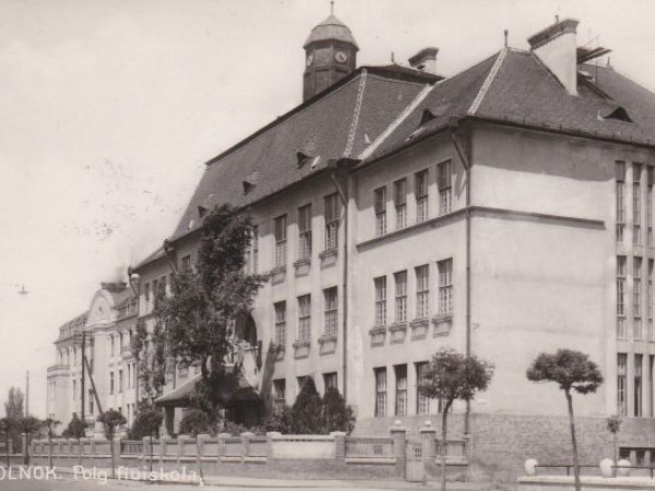 A nagy világgazdasági válság idején készülhetett ez a fénykép Szolnokon. Nem a Templom, hanem a Baross utcában, tehát nem a mostanában megújult, a Belvárosi Nagytemplom mellett lévő polgári leányiskolát mutatja, hanem a fotózás idején már legalább egy évtizede működött polgári fiúiskolát. Amiben jelenleg a megyei rendőrkapitányság működik.