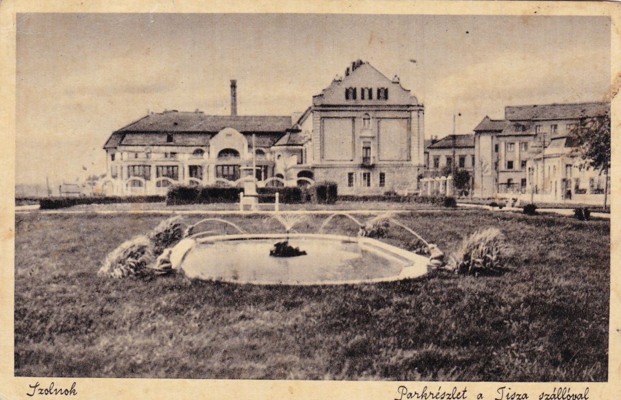 Őszintén megmondom, nekem elég sokára esett le, hogy eredetileg két békás szökőkút volt a mai Verseghy parkban. Csak akkor döbbentem erre rá, amikor a Tisza szállóból fotózott, és a parkot mutató, a húszas évek végén készült lapokat jobban megnéztem, és megfogalmaztam „felfedezésemet”, amit aztán sokan igazoltak is. Akkor már az is világos volt, hogy a város 1927-es térképén, a parkot mutató rajzon a két medence „rajza” nem virágágyás vagy tévedés, hanem a két szökőkút kicsit torzított megjelenése. Egy korábbi bejegyzés révén pedig az is kiderült számomra, hogy a második, a szállodától távolabbi kút medencéjét a hatvanas évek elején, az új belvárosi hídszerkezet építésekor tehették tönkre, majd számolták fel. Tehát rögzíthetjük, hogy a húszas évek végétől, nagyjából harminc éven keresztül két békás kútnál és nyolc békát „megmászva” pancsolhattak a szolnoki gyerekek.