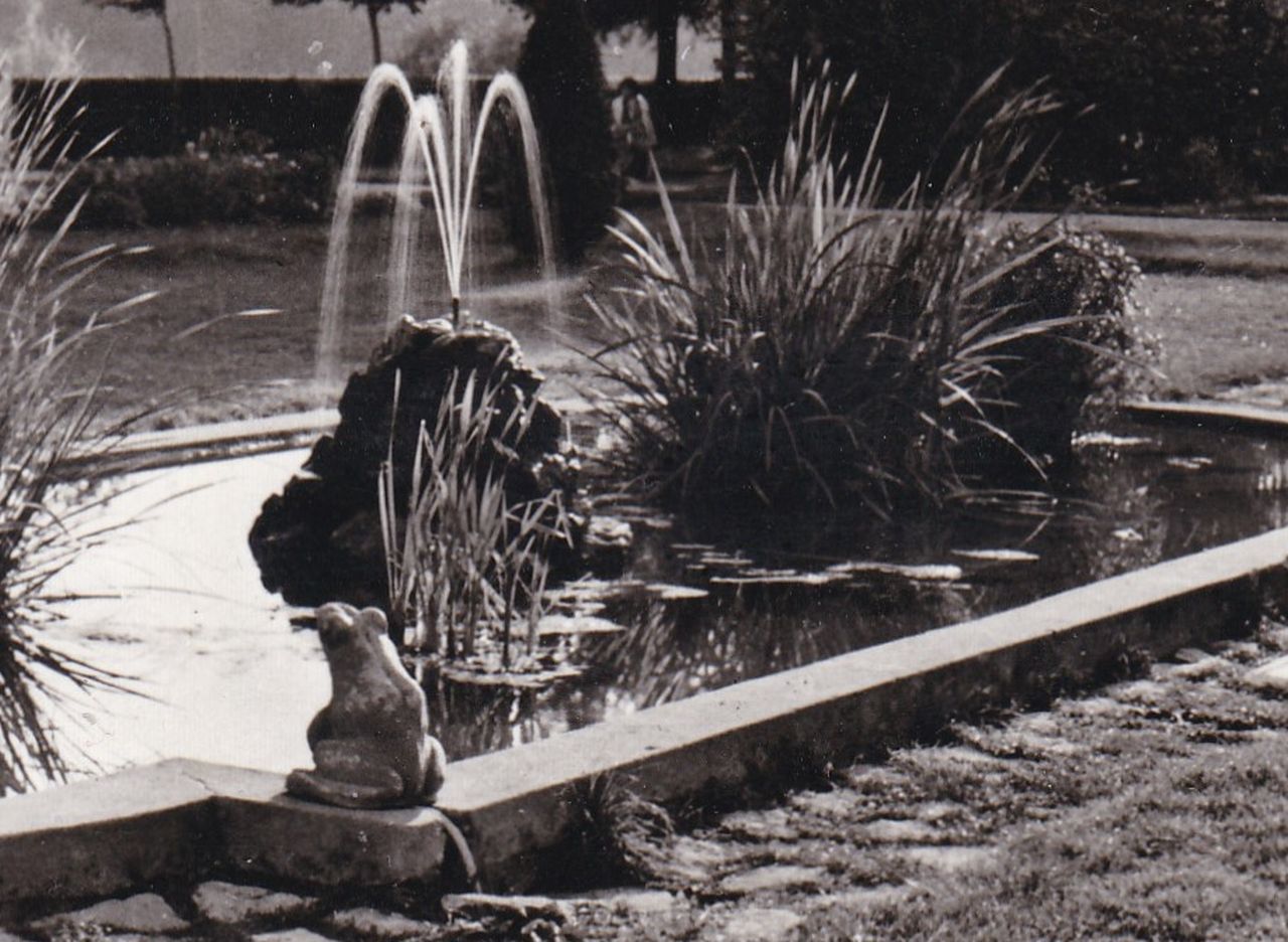 A Verseghy parkban lévő békás szökőkútról már többször írtam, amiknek köszönhetően – pontosabban a bejegyzések generálta hozzászólások révén – szép lassan összeáll a ma már magányos „medence” története. Hogy újra előveszem a témát annak a mellékelt, nem túl jól sikerült képeslap az apropója, amit 1963 júliusában adtak postára Szolnokon. Első ránézésre csak a szolnokiak vagy a várost jobban ismerők tudhatták anno, hogy ez a felvétel itt született. Ráadásul a képeslap hátulján lévő szöveg sem sokat segített a helyszín meghatározásában, mert a „Szolnok, parkrészlet” pont azt nem árulta el, hogy ez az itteni Tisza parton lévő Verseghy-park. Mondjuk, amilyen trehány módon le van vágva a szökőkút két széle a képéről, már az is csoda, hogy a város meghatározása pontosan sikerült a hatvanas évek elején. Kicsit olyan ez a lap, mintha a terv teljesítése érdekében valamit gyorsan még piacra akartak volna dobni a maradék nyersanyagokból. Így ne is magával a lappal törődjünk, hanem a megörökített szökőkúttal!