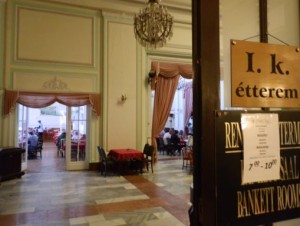 Mindezek ellenére ebédeltünk is. Hogy miket, nem tudom. Az ugyanis már meghaladta volna a hely költségviselő vagy egyéb képességeit, hogy a svédasztalon, a kínálatot is feltüntessék, azaz kiírják. Persze nem úgy, ahogy kizárólag a levesek esetében megtették: kézzel írt A4-es lapokon! Igaz, nehéz is lett volna, hiszen amikor a pincérhölgytől arról érdeklődtem, hogy a kétfajta pörkölt közül vajon melyik milyen, ő sem tudta. Viszont elegánsan átordított a báltermen a kollégájának, aki legalább megtippelte a birkát és a zúzát. Még jó, hogy nem szedtem, különben fizethettem volna a 800 forintos felárat.
