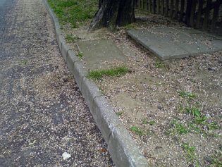 Szolnok utcáit járva úgy tűnhet, hogy a járda azé, akinek a háza előtt van. Legalábbis erre utal, hogy alig van a városnak olyan utcája, amelyiknek az elejétől a végéig, netán a páros és a páratlan oldalán is ugyanolyan lenne a járdája. Mert a járda kivitele – aszfaltos, betonos, viacoloros – és minősége – extra, átlagos, kopott, elhanyagolt – az épületek kora és a tulajdonosok lehetőségei szerint változik. Feltételezem, nemcsak a mi házunkkal szemben volt elvárás, hogy csak akkor kapja meg a szükséges engedélyeket, ha a telek körüli járdákat rendbe hozzuk. A telek végén tehát ott a határt is jelző bukkanó. Bringával kevésbé, babakocsival már egész jól érzékelhető.