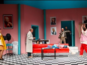 A színészek megérdemelnék. Zelei Gábor az elsőtől az utolsó pillanatig úgy marad benne a régiségkereskedő szerepében, mintha a fél előadás nem arról szólna, hogy a nézői kérdésekre kell reagálnia, ráadásul olykor a legnagyobb természetességgel dob be poénokat. Ónodi Gábor, a Hajmeresztő fodrászszalon meleg tulajdonosának alakjában végig úgy lubickol, hogy közben nem ripacs, nem bántó, és még befóliázni sem kellene. Kertész Marcella szenátornéja harsány és habókos, a magam részéről sokáig meg voltam győződve arról, végül őt viszik el bilincsben. Ráadásul a legnagyobb poént is ő mondja: „Mi a maga férje? Képviselő. Na, jó, de mit csinál? Hát képvisel.” Cseke Lilla Csenge kékhajú fodrászlányként is bebizonyítja, hogy bármit képes eljátszani, bárkit életre tud kelteni, és őt sem nagyon lehet kibillenteni a játékából. Ahogy a segédnyomozót alakító Horváth Gábort sem, akinél volt olyan pillanat, hogy nem tudtam eldönteni: a premieren találta ki vagy már a próbákon is csinálta.