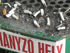 Sehol nem tudok már nyugodtan elszívni egy rohadt cigarettát. Se étteremben, se munkahelyen, de még az utca is tiltott zónákkal teli. Megbélyegeztek bennünket, mintha bűnözők lennénk, a társadalom mocska. Legalább egészségesebben élsz, nyugtatnám, de még idegesebb lesz: attól kapok gyomorfekélyt vagy rákot, hogy nem dohányozhatom.