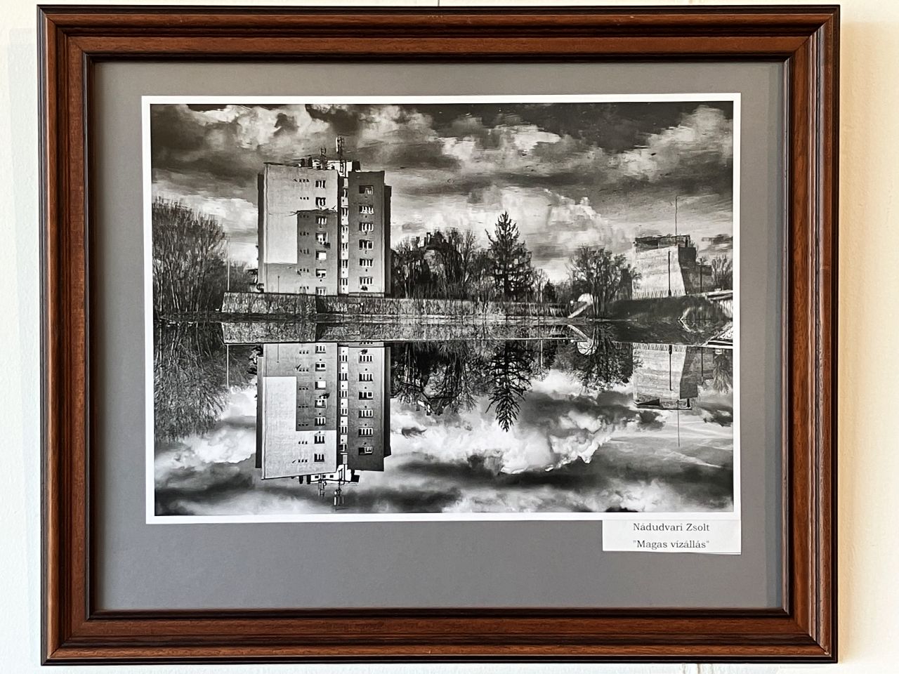Nádudvari Zsolt „Magas vízállás” című képe előtt például hosszan ácsorogtam az Aba-Novák Agóra új szárnyának emeletén, mire meg tudtam fejteni, hogy tulajdonképpen egy fejjel lefelé lévő fotót nézek, azaz fölül van mindaz, ami a vízben tükröződik. Csettintettem. Ez ugyanis egy olyan apró ötlet, ami egy fotót nemcsak különlegessé, de a nézője számára maradandóvá – feledhetetlenné – is tesz, alkotóját pedig alapvetően megkülönbözteti és kiemeli a fotókat készítő tömegből. Mert a jó fotóhoz, a képpel meséléshez nem elég a megvásárolható technika, a türelem, hanem kell az a plusz, ami különlegessé teszi ugyanannak a látványnak a megörökítését, ami bárki előtt feltűnhet. Nádudvari Zsolt a torkolatnál, árvíz idején készített egy képet, ami olyan pluszokkal lett feltöltve, hogy nem egy szimpla tájkép, árvízi fotó lett.