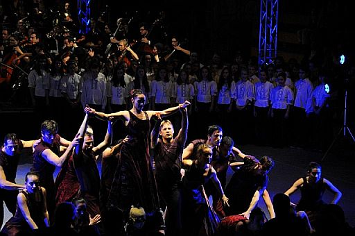 Nehéz eldönteni, hogy a zene vagy a tánc volt-e a nagyobb élmény. Amikor az elején Masahiro mester intésére összeállt a vagy kétszáz fős zenekar és énekkar, majd zengeni kezdett a Carmina Burana, a hideg futkosott a hátamon. És voltak olyan fantasztikusan kiválasztott részletek, amelyekre úgy verte az ütemet a lábam, mint egy rock koncerten. Herczku Ági hangjánál pedig mindig azt kerestem először, hogy honnan jön ez az egyáltalán nem tolakodó, a produkciót alázatosan kiszolgáló csoda.