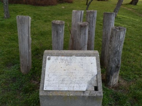 A beton talapzatra szerelt, és valamilyen oknál fogva nyolc darab farönk ölelésébe helyezett táblát a Szolnok Ispán körúti szalagházak közötti, a Zagyva parti artézi kúthoz vivő átjárónál, az épületek mögött találjuk. Az egyre nehezebben olvasható felirat szerint a park 1974-ben épült „Szolnok város felszabadulásának 30 éves, fennállásának 900 éves évfordulója tiszteletére”. Azt pedig csak mi tehetjük hozzá, hogy nagyjából akkor, amikor a város első panel tízemeletesekből álló lakótelepét átadták. Ami egyébként egyik fontos eleme volt a város fennállásának jubileumához kötődő, akkor már legalább tíz éve tartó, de a hetvenes évek közepén csúcspontjához érő városépítésnek.