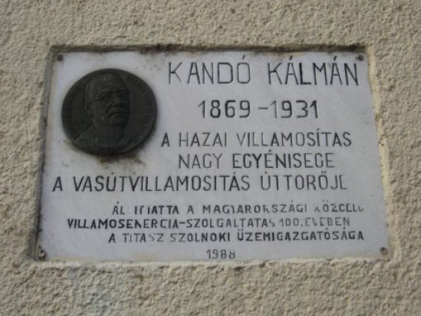 Vitathatatlan, hogy a hazai villamosítást is segítették a találmányai, de amikor Magyarországon 1888-ban megindult a közcélú villamosenergia-szolgáltatás, Kandó éppen csak elkezdte egyetemi tanulmányait. Tehát számomra nem egészen világos, hogy a hazai villamosenergia-szolgáltatás emlékére állíttatott emléktáblára miért került Kandó? Azzal együtt, hogy Kandó tevékenysége és a villamosítás is megérdemelne ennél komolyabb emlékhelyet Szolnokon.