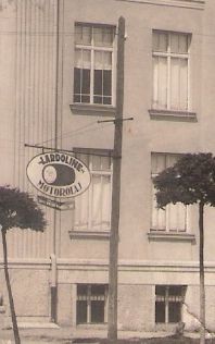 Lehet, tévedek, de a sok nyitott ablak miatt nekem úgy tűnik, mintha a Baross utcai épületet még az átadás előtt örökítették volna meg. A gépipari lassan kilencven éve ugyanígy néz ki, annak ellenére, hogy az elmúlt évtizedekben váltott néhányszor nevet. A fotó egyetlen érdekessége a rákerült reklámtábla, ami a Lardoline motorolajat hirdet. Hozzáértők szerint azért, mert ekkoriban az Eötvös téren vagy a közelében is működött üzemanyagtöltő állomás.