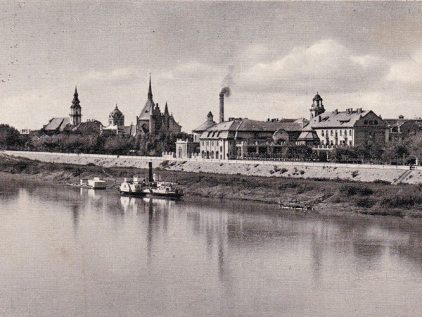 Egy 1940 nyarán ideiglenesen Szolnokon állomásozó gyorshadtest katonája küldte ezt a Monostory-féle képeslapot Pestújhelyre. Gőzhajó, kiépült Tisza-parti mellvéd, füstölő szállodai kémény, no meg a három templom. Alig húsz év elteltével újra katonák postáztak képeslapokat Szolnokról.