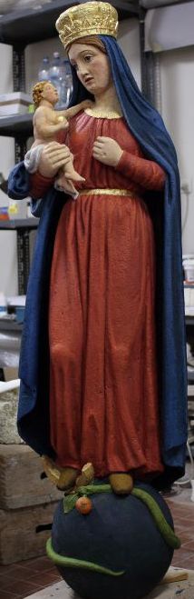 Az egyik ilyen sátornál találkoztam Pogány Gábor Benővel, a Szolnoki Művészeti Egyesület elnökével, aki már kétszer is mesélt a Mária utca végén felállítandó Mária-szoborról. Arról a szoborról, amit 1847-ben a hálás szolnokiak azért állíttattak a Mária utcában, hogy így fejezzék ki hálájukat két tűzvész sikeres megfékezéséért. A szobor bő évszázadon keresztül állt a helyén, majd bekerült a plébánia épületébe, hogy aztán furcsa módon a rákóczifalvai Macimúzeumban kössön ki.