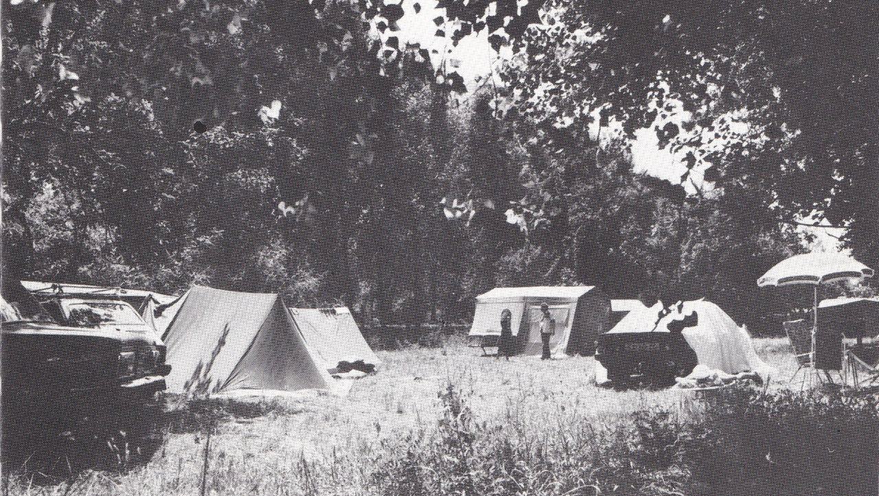 A megyei idegenforgalmi hivatal 1964-ben kezdte el a kemping fejlesztését, ami persze nem indult simán. A kijelölt területen először tíz darab, előregyártott elemekből összeállítható faházat szerettek volna elhelyezni, ám azok megérkezése után kiderült, harminc öreg fát kellene kivágni a betonalapok lerakása miatt. A problémát hetekig tartó „vacakolás” követte, mígnem a város akkori főkertésze felvetette, hogy mi lenne, ha a faházak alapjait az eredeti tervekhez képest ferdén helyeznék el, mert akkor nem kellene fákat kivágni. A triviális megoldásig azonban a drágán beszerzett és a területre lerakott faházelemek többsége tönkre ment.
