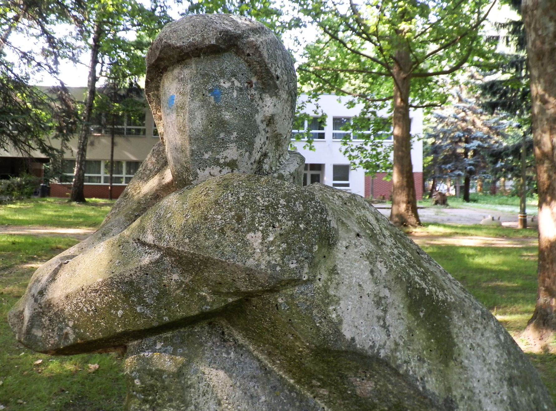 Egy élő skanzen az egész. Ahol még felfedezhetjük az altáborok zászlórúdjait, az ágyak, bútorok is lehet, hogy évtizedek óta szolgálnak. És a múlt lenyomataként ott virítanak az akkor elengedhetetlen és talán szépnek gondolt beton virágtartók, a kiszáradt szökőkút és az ilyen helyekről sem elhagyható köztéri alkotások. Nem tudom, milyen csoda mentette meg. Csak azt, hogy szeretek oda rendezvényekre járni, szeretek ott bringával egyet kerülni. Talán mert kevés hasonló helyet tudtunk megmenteni.