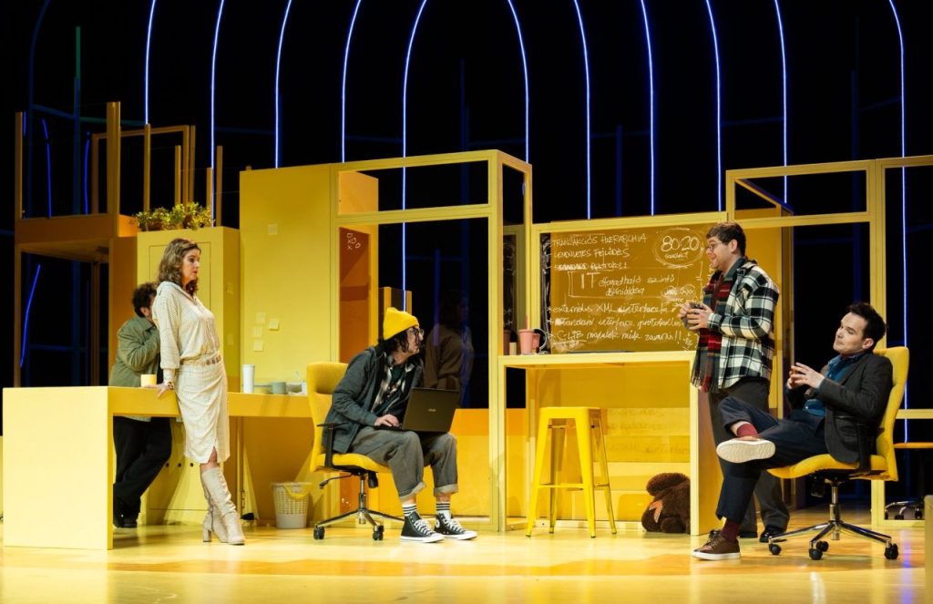 Azt nem mondom, hogy annyira bátor a rendezés, mint lehetett volna, hiszen minden biztosítékot kivert volna az előadás, ha például Magyarországon játszódik, magyar irodában, netán egy német vagy kínai cégfelvásárlót megjelenítve. De ne gondolkodjunk, vagy ne gondoljuk túl, hiszen már a darabválasztás is elégedettségre adhat okot! Azt sem írnám, hogy nincsenek az előadásban mára elcsépelté vált klisék, mint a végén, a tolmácson átlépő Kristoffer és Finnur ismeretlen színpadi szerző kapcsán történő egymásra találása. Vagy éppen kihagyott ziccerek, mint a zenekarozás miatt amúgy szórakoztató csapatépítős jelenetsor. Azt sem állítanám, hogy nem egy jóval gyorsabb, pörgősebb, agyamat eldobom előadásra számítottam, ám, ha olyan lett volna, akkor egy felvonásban, másfél óra alatt lepörög, és kevesebb időt hagy a gondolkodásra. Azt pedig kifejezetten tagadnám, hogy a fent leírtak fontosak, mert a Dicső Dániel rendezte szolnoki Főfőnök ebben a formájában is célt érhet. És akiknél célt ér, annak siker és örök élmény lesz.