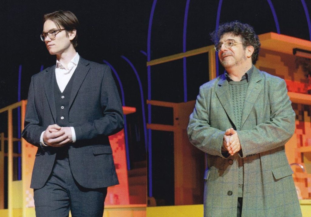 Nem kérdés, hogy Dósa Mátyás egyik legnagyobb, ha nem az eddigi legnagyobb alakítása az önimádó, mégis bizonytalan, egy általa sem mindig értett világban helyét és pénzét kereső színész olykor ripacs figurája, aki tulajdonképpen viszi az egész történetet és játékot. Amihez egyenrangú partnerek a cég különböző lelkivilágú dolgozóit alakító színészek: Sárvári Diána, Pertics Villő, Cseke Lilla Csenge, Vándor Attila, Polgár Kristóf és Hajdu Tamás Miklós. Utóbbi a bizonytalan zseniként eddigi legjobb szolnoki karakterformálását hozza, megmutatva, hogy ha lehetőséget kap, akkor bármit és bárkit eljátszik. Ők hatan szinte egy külön társulatot, a „forgószínpad lakóit” alkotják a darabban, akikhez tényleg csak mellékszereplőként kapcsolódik Molnár Nikolett ügyvédnője, Mészáros István izlandi Finnurja és Csákvári Krisztián tolmácsa. Közülük a fiatal, eddig Szolnokon nagyobb szerepekben látott Csákvári játéka pedig példa arra, hogyan lehet alázattal viszonyulni egy kisebb feladathoz.