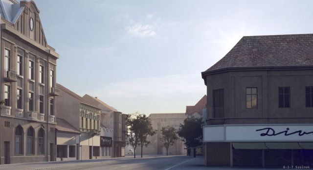 – Tízéves lehettem, amikor megláttam egy fényképet édesapámnál, amin a „Fradi ház” volt, de előtte, a későbbi taxiállomás helyén még állt egy régi ház. Az, amelyikben Steiner Jakab fiainak a boltja, később pedig Róth Dezsőé működött. Egyszerűen nem fért a fejembe, hogy majdnem mindennap elmegyek arra, és mégsem úgy néz ki az a hely. Gyerekként még úgy éreztem, hogy a dolgok mindig is úgy voltak, ahogy aznap vannak. Akkor kaptam egy képekkel tarkított gyorsított történelemleckét a Nerfeld-palotáról és a többi, akkor már rég lebontott szolnoki házról, én meg hirtelen nagyon szerettem volna körbenézni milyen is lehetett egykor a város. Ez később is sokszor eszembe jutott, de igazán csak akkor „valósíthattam meg”, amikor elkezdtem komolyabban 3D-ben rajzolni. A munkámmal jött, hogy szerettem volna egy komolyabb kihívást jelentő épületet a portfoliómba, mint például egy neobarokk vagy szecessziós épület. És akkor jött az ötlet, hogy miért nem a régi, szolnoki házakat alkotom újra. Ez akkoriban nagy kihívás volt, leginkább az információhiány miatt. Mert fényképet még csak-csak lehet találni a házakról, igaz, különböző korokból, de a tervrajzok csak az esetek kis százalékában lelhetők fel. Körülbelül két éve vettem elő újra a projectet. Édesapám (az ismert fotós, Danka István – a szerk.) halála után ugyanis rengeteg kép, adat maradt, amit egy Szolnokról szóló könyvhöz és egy Szolnokot ábrázoló maketthez szeretett volna felhasználni, de sajnos nem kerülhetett rá sor. Úgy éreztem, az lenne a legjobb, ha fogom magam és megcsinálom, ha nem is pontosan azt, amit szeretett volna, de valami hasonlót, így nem vész kárba a munkája. Nem mellesleg pedig megnézhetem végre milyen volt a 33-as a Sütő utcából nézve.