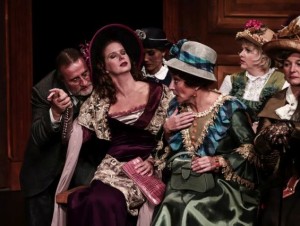Tulajdonképpen le a kalappal a Szolnoki Szigligeti Színház hat – miként a címből talán kiderült, becsapott hölgyeket alakító – színésznője előtt. Molnár Nikolettről az első pillanattól kezdve el tudom hinni, hogy bár tudja, talán becsapták, talán csapodár a szíve választottja, azért kitart mellette. Jankovics Anna fűszeresnéje – pláne a bírót alakító Molnár Lászlóval közös kis játékaik miatt – köztünk járó kereskedő, aki nehezen hiszi el, hogy a szerelem például nem üzlet. Sárvári Diána, mint öntelt művésznő egészen káprázatos, és szerintem ismét csak azt üzeni, talán sokkal többször és másfajta szerepekre is érdemes lenne felkérni. Lugosi Claudia katonás nagyságos asszonya amellett, hogy pompás jellemábrázolás, ugyancsak azt mutatja, mennyi mindenre lehetne alkalmazni a művésznőt. Gombos Judit ütődött aggszüze nem kérdés, hogy olyan külön történet, amire önálló darabot lehetne építeni. Gyöngyössy Katalin pedig egyszerűen hihetetlen, hiszen már azelőtt színpadra lépett Szolnokon, hogy én először beülhettem volna a nézőtérre. És persze ne feledkezzünk meg Fejes Katicáról sem, aki írnokként, lényegében egy láthatatlan, szürke szerepben veteti észre magát.