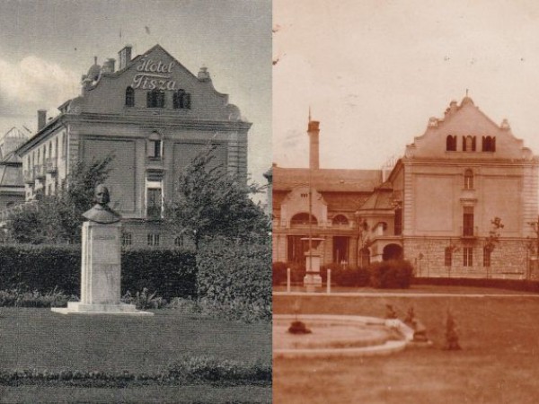 A belvárosi híd lábánál lévő, egykori vásárterek helyének rendezését követően, Szolnok legnagyobb közparkjának kialakítása, és a Tisza szálló felépítése után, a környék kedvelt témája lett a képeslapkiadóknak. Talán nem túlzás azt mondani, hogy évtizedenként jelent meg új anziksz a szálló keleti homlokzatával. A most bemutatandó kettő az elsők közül származhat.