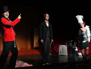 Olykor felmerül bennem, hogy nézőként mennyire kell nekem a színház működésének gazdasági vonatkozásaival törődnöm, van-e közöm egy előadás kapcsán például a társulaton belüli foglalkoztatási kényszerhez? Az idei szolnoki évad első bemutatója után úgy érzem, hogy bár nem szeretnék ilyesmivel foglalkozni, a Lila ákác rákényszerít. Merthogy miközben nagyjából zajlik a Szép Ernő darab cselekménye a színpadra épített, futófényekkel körberakott színpadon, ami tulajdonképpen egy orfeum pódiuma, abban a bizonyos mulatóban, a Szigligeti nagyszínpadának többi részén egy teljesen másik előadás megy. Igaz, leginkább csak az első felvonás alatt. Érthetetlenül megszakítva a valódi darab cselekményét zavaró dalbetétekkel. Arról nem is beszélve, hogy miközben a helyszín és a cselekmény időben nincs rendesen elhelyezve, ebben az orfeumban olyan derekas zsidózás zajlik, amit ma már nehezen lehet azzal védeni, hogy esetleg ez így olvasható az eredeti darabban. Pláne, hogy az előadás egészét tekintve épp oly funkciótlan, mint a meleg szituációk felvillanása. Ám a legmeglepőbb mégis az, hogy a Lila ákácon belüli két előadás milyen ritkán keresztezi egymást.