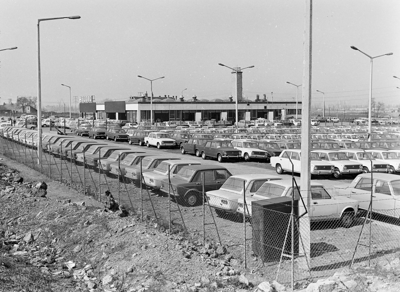 A hetvenes években jobbára már csak szocialista – azaz kelet-német, lengyel, csehszlovák, szovjet és román – személygépkocsikat lehetett Magyarországon kapni, nyugati típusokból legfeljebb néhány FIAT 127-es volt még a Merkúr kínálatában. Ennek egyszerű oka volt: a szocialista autókért nem kellett keményvalutát adni az országnak, sőt a KGST révén termékkel is ki lehetett egyenlíteni a számlát. És mivel dollár, márka és egyéb konvertibilis valutából kevés volt, ráadásul a KGST autógyáraknak biztos piacra volt szükségük, lassan eltűntek a Merkúr kínálatából a Renault-ok, a Volkswagen-ek és az olasz FIAT-ok. Hogy 1975-ben pontosan milyen típusokat lehetett Magyarországon vásárolni, arról tökéletesen tudósítanak a korabeli napilapok utolsó oldalán, heti-kétheti rendszerességgel közölt Merkúr-autósorszámok. Azaz azok a listák, amelyekből kideríthette az autójára váró, azért valamennyit előre befizetett vásárló, hogy körülbelül mikor érkezhet meg álmai járgánya. (Fotó: Néhány olasz FIAT a Zsigulik között a Merkúr csepeli telepén – Fortepan)
