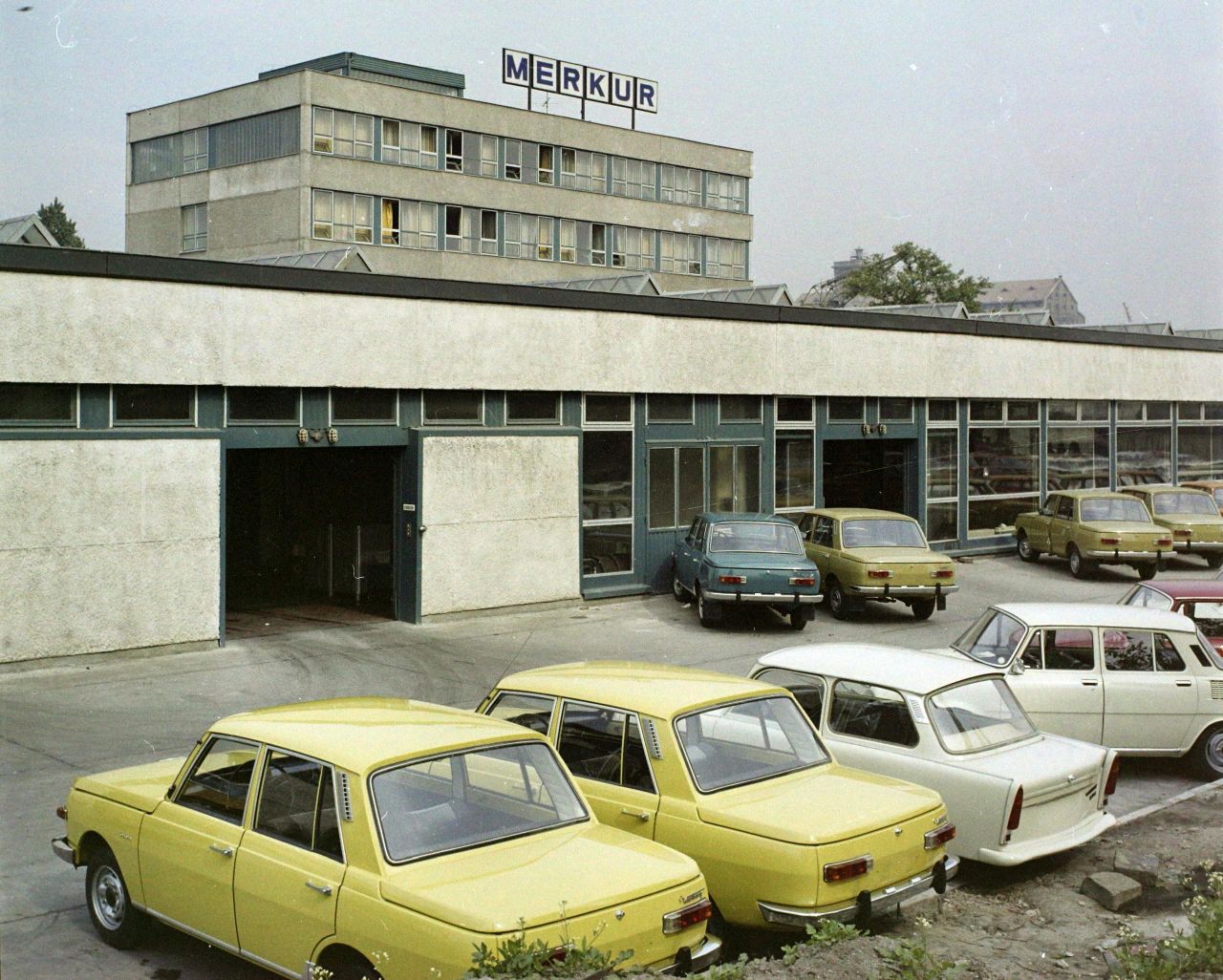 Szolnok 900 éves jubileumának évében a Merkúr kínálatában mindössze hat márka szerepelt, összesen tizenhat típussal. A Német Demokratikus Köztársaságban (NDB) 1963 óta gyártott – kisebb ráncfelvarráson átesett – Trabant 601-esből háromfélét lehetett rendelni: simát, kicsit jobban felszereltet és kombit. Miként az 1966 óta kínált Wartburgból is létezett Limousine, de Luxe és Tourist változat. Viszonylag nagy választék volt az 1975-ben már kifutó modellnek számító Skoda 100 és 110 típusokból, hiszen mindkettőnek volt „luxus”, azaz kicsit jobban felszerelt változata. Illetve a csehszlovák autóipar kínálta – legalábbis Magyarországon – az egyetlen elérhető „sportkocsit”, a gyönyörű Skoda Sport Cupe-t. Az 1971-ben megjelent szovjet Zsiguliból a sima 1200-as és annak combi változata szerepelt a kínálatban, illetve az év elején megjelent a legendás „ezeröcsi”, azaz a 2103-as típusjelű, ikerlámpás verzió is. Ezeken kívül egyfajta Moszkvics, Polski Fiat és Zaporozsec volt elérhető. Ha pedig sikerült választani, akkor a Merkúr adatlapján három színt is meg lehetett jelölni, de végül úgyis azt kapta az ember, ami akkor éppen volt. (A még nem kapható kombi Zsiguli szakértése a Budapesti Nemzetközi Vásáron – Fortepan)