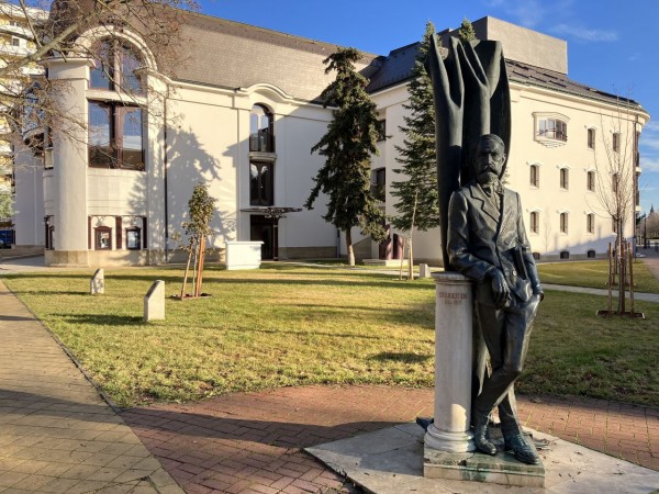 Szomorú, búsuló, merengő, bánkódó vagy ülő jelzővel is illetett szolnoki Krisztus-szobor 2023-ban nemcsak picit odébb került, de megszabadult festésétől és a szemét is felnyitotta. Két évvel a felújítása után a körülötte lévő terecske nevet is kapott, így talán van remény a következő évszázadokra is.