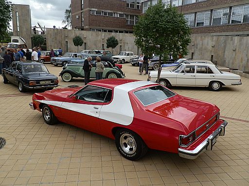 Mint a mostani kiállításon is feltűnő Ford Gran Torino, ami mindenkinek azonnal beugrik, ha a Starsky és Hutch című közepes krimisorozatra gondol. Amiből bennem csak annyi maradt meg, hogy Amerikában olyan szabadság van, hogy a rendőrök a kocsijuk ablakán keresztül szálnak be. Esküszöm, megfordult a fejemben a Tiszai hajósok terén, hogy kipróbálom ezt az opciót.