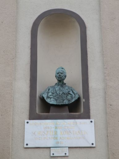 Amiket az utcáról nem is könnyű elolvasni, hiszen a táblák és a fülke a szoborral az első emelet magasságában, azaz jóval a fejünk fölött található. Így arról se lehet szó, hogy a püspökre és nagylelkűségre emlékezve olykor koszorút vagy virágot lehessen ott elhelyezni. Holott például idén, Schuster Konstantin születésének 200. évfordulóján jó okunk lett volna erre. Hátha ragadós lenne a példa: a nagylelkű adományozás és a jövőbe, az oktatásba, a tudásba, a kultúrába fektetés.