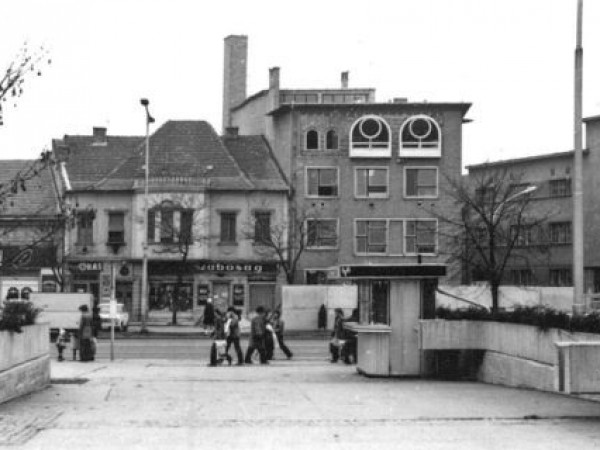 Ami viszont sokkal jobban megmaradt bennem, az a kép előterében lévő alumínium bódé, tetején a Pelikán Szálló igényes logójával. Emlékeimben az él, hogy ebben az egyszerű építményben a nyolcvanas évek második felében hot-dogot árultak. Ami akkoriban nagy szónak számított. Amolyan klasszikus, nagykiflis, virslis magyar változatot, amire elég sokat kellett várni, mivel csak két-három sütővas működött a pici helyiségben. Cáfoljanak meg, de bennem az él, hogy itt csak hot-dog volt, és semmi más, még üdítő sem. Nem volt túl igényes hely, de hát negyedszázaddal később se lehetünk nagyon büszkék az SZTK melletti büfére.