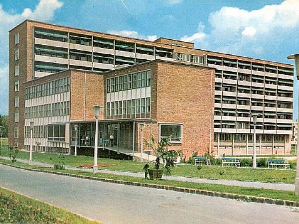 Akárhogy kőrözök képzeletben a városban, csak arra jutok, hogy az egykori Zagyva-meder helyére – vagy partjára – épített kórház az első igazán nagy közjóléti beruházás a város 1956 utáni történetében. Mert ugyan a színház felújítása korábban készült el, ám az nem volt teljesen új építmény. A Damjanich uszoda fedett-lelátós részét is csak pár hónappal – de lehet, hogy csupán pár héttel – korábban adták át, ám az sem méreteiben, sem költségvetésében nem vetekedhetett az új kórházzal. Ahogy a Kossuth téren, a Ságvári körúton és a színház mellett épülő lakóházak sem, ráadásul azokat nem is tekinteném közjóléti beruházásnak. Ahogy az 1965-ben átadott pártházat sem, ami pedig minden tekintetben az átalakuló Szolnok első „nagyberuházása” lehetett. Ám méretei alapján simán lehagyta az 1967. június 9-én, a vasutasnapon átadott MÁV kórház és rendelőintézet.