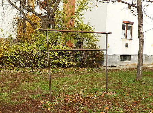 Hanem a poroló. A kertes házaknál általában egy stabilabb szárítókötélre vagy megfelelő kerítésre terítettük a nehéz, kirázhatatlan szőnyegeket, hogy aztán ott püföljük őket, de úgy, hogy szálljon a por. Mivel ilyen egyedi helyek a tömbházak között nem lettek volna, szerencsére valakinek eszébe jutott, hogy porolóállványokat is építeni kell. Két oszlopot – vasból vagy betonból -, közéjük pedig legalább két méter magasra egy erős csövet, amire majd a szőnyeget lehet teríteni.