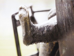 Ha csak azt mondom, hogy Szabó György szolnoki szobrászművész, a nagy többség csak megrántja a vállát, és a Munkácsy-díja hallatán is legfeljebb zavartan bólogat. Viszont, ha rámutatok a Hild téren, az Agóra előtt álló Curriculum Vitae című szobrára – a bohócsapkás fiúra, aki a hátizsákjában egy másfajta bohócsapkás kisfiút cipel -, akkor nincs az a szolnoki, meg környékbeli, aki ne csapna a homlokára, hogy hát persze, ha a szobrászt nem is, de azt az alkotását ismeri. Sőt jól ismeri, naponta találkozik vele. Néhányan talán még el is gondolkodnak azon, hogy kit is cipelhet a hátán, rácsok közé szorítva az a lehajtott fejű alak. És máris együtt gondolkodnak Szabó Györggyel, akivel lehet, hogy soha nem találkoztak, de kiderül, van bennük valami közös.