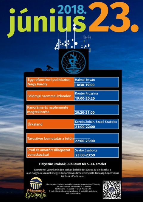 – A Múzeumok Éjszakája egy rendkívül kreatív és multifunkcionális, országos kezdeményezés. Kiváló lehetőség a közösségek megfogására, országos rendezvényként óriási reklámfelületet kap. Mi tizenegyedik alkalommal csatlakozunk színvonalas előadásokkal és távcsöves bemutatással a tetőn. Leginkább azért, mert a TIT-nek és szakkörünknek is kiemelten fontos célja, a fiatalok megszólítása. Reméljük, némelyik látogatóból rendszeres vendégünk, később pedig talán szakköri tagunk lesz.