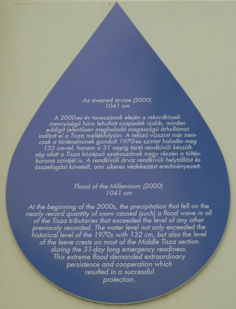 Aki emlékezni szeretne arra a 2000-es nagy vízre, annak a Városháza házasságkötő terem felőli oldalán lévő táblán kívül érdemes a Tiszaparti sétányt is megnéznie, és a Református templom mögött a régi támfalnál megpróbálni felidézni, mekkora is lehetett az a bizonyos 1041 centin tetőző árvíz. Igazán ott lehet érzékelni, mennyivel a fejünk fölött hömpölygött a Tisza, ami – miként az új támfal folyó felöli oldalán olvasható – az elmúlt évszázadokban legalább annyiszor állította próba elé Szolnokot, mint a tűzvészek és a pestisjárványok.