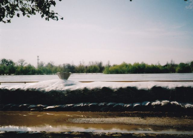 Ha nem éppen egy újabb vészhelyzet elhárítása lenne a közös feladat, akkor minden bizonnyal ennél az emléktáblánál is lett volna koszorúzás. Meg előtte talán kicsit helyre is állítják a Városháza falán a 2000-es nagy árvíz elleni védekezés valamennyi résztvevőjének emléket állító táblát.