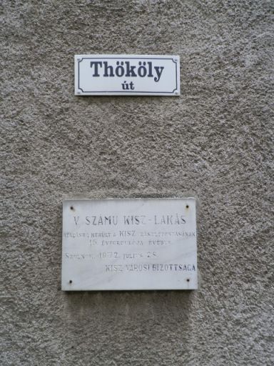 A Thököly út 18. számnál látható műkő tábla természetesen némi ideológiai hátteret is hordoz. Mégpedig azt, hogy a fiatalok lakáshoz juttatásáról az állampárt ifjúsági szervezete igyekezett gondoskodni. Azt persze nem tudom, hogy ebben a házsorban csak KISZ-tagok kaphattak-e lakást, esetleg volt-e valamilyen életkori megkötés. Avagy ez csak valamiféle máz volt az egyébként is fontos lakásépítésen.