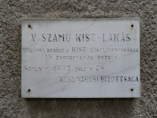 Ahogy a táblával kapcsolatban az is furcsa, hogy V. számú KISZ-lakásról beszél. Azt kizártnak tartom, hogy egyetlen lakás átadásának állítana emléket. Szerintem minimum az egész lépcsőházra, de inkább az egész házsorra utal. És valahol még legalább négy ilyen táblának kellett lennie. Ha már ez volt az ötödik.