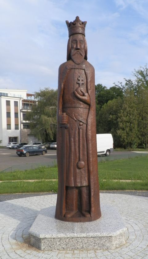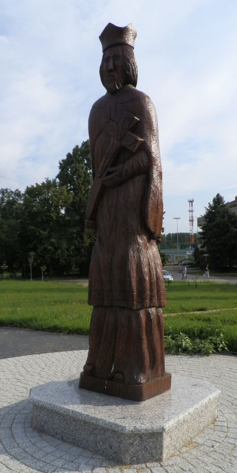 A szolnoki Vízügyi emlékparkba – szemben állva a faragványokkal balról jobbra – Szent László, Szent Kristóf és Nepomuki Szent János alakjait faragta meg. Három olyan szentét, akik valamilyen módon köthetők a vízhez, a vízből élőkhöz. Szent László királyunkhoz (1077-1095) ugye nagyon sok legenda kapcsolódik, többek között az, amely szerint imájával a sziklából vizet fakasztott katonáinak. A középre helyezett Szent Kristóf vállán gyermek képében a teremtővel látható, hiszen a III. században Szamóban élt Kristóf a legenda szerint egy nehezen járható folyón egyszer gyermek képében az „urat” cipelte át a túlpartra, hogy utána életét a térítésnek szentelje. A harmadik alkotás a csehországi születésű Nepomuki Szent János. Az egykori prágai érseki helynököt 1729-es szentté avatása óta a folyók, a hajósok, a hidak, a vízimolnárok és a halászok védőszentjeként tisztelik. Nem véletlen, hogy Szolnok egyik legrégebbi köztéri szobra is őt ábrázolja, amely a Vártemplom mögött áll.